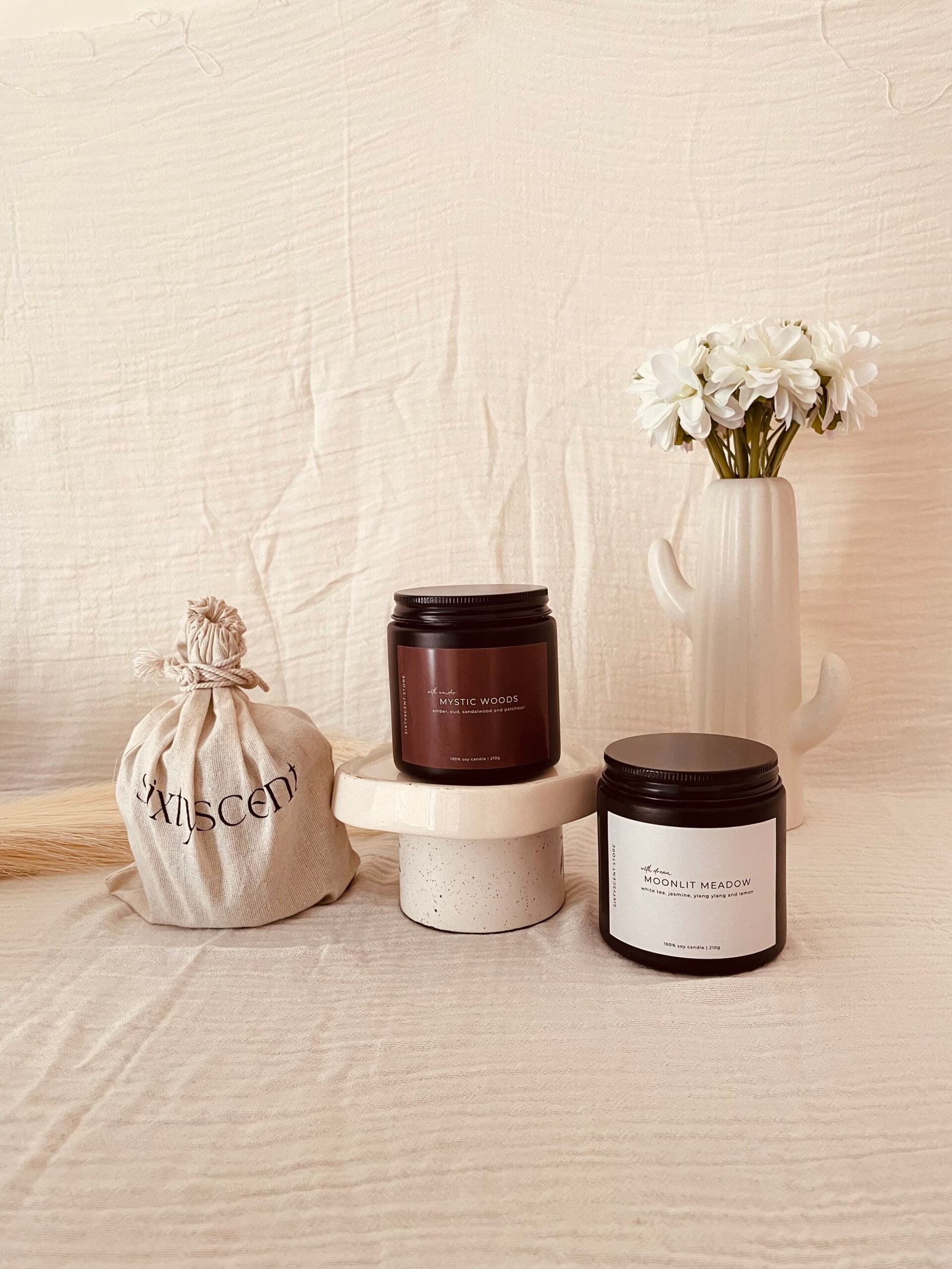 - A grounding-meets-light duo: Mystic Woods with amber, oud, sandalwood, and patchouli; Moonlit Meadow with jasmine, white tea, ylang ylang, and lemon — each offering a distinct sensory mood